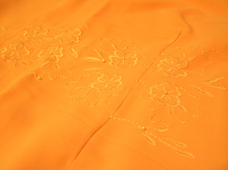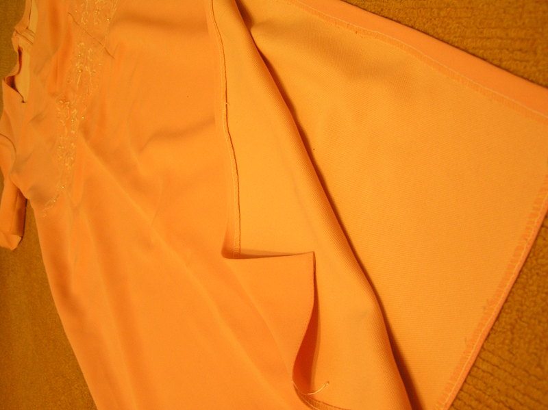 Нарядное платье абрикосового цвета из легкой и приятной для тела ткани, б/у, состояние отличное. Реально одето 2 раза. Сшито на заказ (2-ого такого не существует!) для выпускного. На талии машинная вышивка цветочных мотивов и расшито бусинами под жемчуг. Ассиметричный ворот, короткий рукав, глубокий разрез, открывающий левую ногу, Длина чуть ниже колена при росте 1.65 м. На 44-46 размер (украинский). |