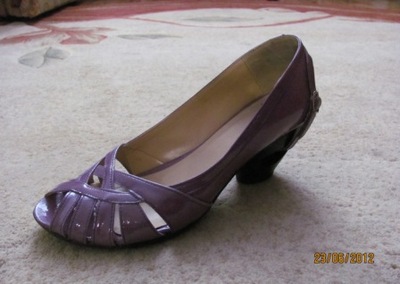 Фиолетовые, лаковые босоножки, хорошее качество |