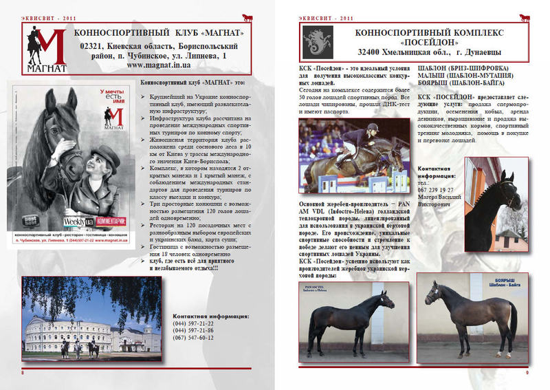 Единственный в Украине справочник по конным клубам и конным заводам Украины. Красочное издание станет Вашим помощником в поиске места для отдыха и занятий по конному спорту, поиска конной амуниции или ветеринара. 100 страниц полезной информации. |