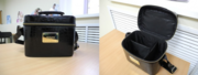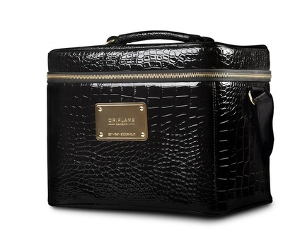 Черный. Лаковый. На молнии. Три глубоких отделения+боковой карман. Еще одно отделение на крышке кейса. Регулируемый ремень на плечо и ручка для удобного ношения. |