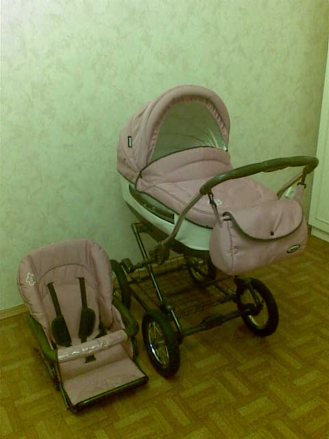 Прогулочный блок: 4 положения спинки, 5-ти точечные ремни безопасности с мягкими наплечниками, съемный барьер, подножка регулируется, удлиняя спальное место, в горизонтальном положении спинка имеет жесткую защиту головы ребенка, подножка и барьер заламинированы, покрыты специальной защитной пленкой, чтоб легко было помыть, колпак на прогулочное кресло переставляется со спальной люльки, вставляется он в прямоугольные пазы в подлокотниках прогулочного кресла и пристегивается сзади кнопками.
