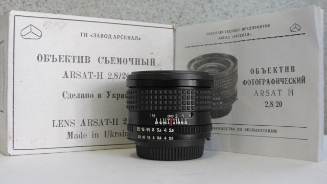 Сверхширокоугольный светосильный объектив ARSAT H 2,8/20 mm (МИР-73Н)-предназначен в качестве сменного для малоформатных зеркальных камер фотоаппаратов типа:
