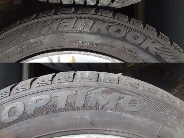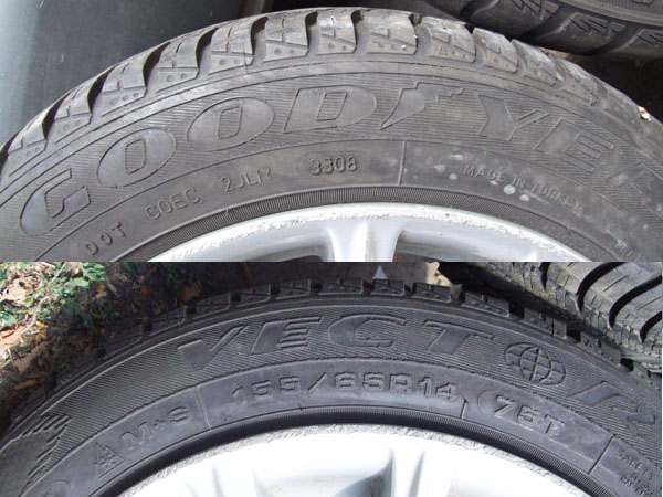 резина 155/65 R14: пара - Henkook Optimo-4, пара - Goodyear Vector