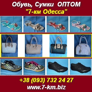 Оптовый интернет магазин «7-км Одесса» предлагает: Оптовая продажа обуви и сумок по бросовым ценам. Оптовая продажа сумок 860 моделей от 35 грн. Сумки женские, школьные рюкзаки оптом. Оптовая продажа обуви 1700 моделей от 30 грн. Обувь женская, мужская, детская оптом со склада. Приглашаем к сотрудничеству. Расширяем дилерскую сеть. Доставка по Украине. Александр +38(093)7322427 www.7-km.biz |