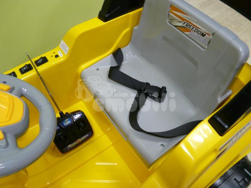 Продам детский джип Рейнджер: корпус капроновый не ламается; на всех колесах резиновая прослойка для бесшумной езды по асфальту; одно местный; 1 электромотор 6 вольт; аккумулятор: 1 аккумулятор 6В, 7амп; время зарядки: 10-12 часов (ночь); кол-во скоростей: 1 скорость вперед - 4 км/ч и одна назад - 4км/ч; сигнал: есть; пульт дистанционного управления; г/п: до 30 кг; фары включаються отдельно, непрерывная езда: 1,5 - 3 часа; цвет желтый ; вес автомобиля: 12 кг; размер: д110ш65в70; в комплекте также: зарядное устройство; ремни безопасности; возраст: от 10 месяцев до 6 лет так как есть ПУЛЬТ ДУ; производитель: Toy House(США); цена 1777 грн. гарантия 1 год, доставка по Украине, оплата при получении тел. 0662287271