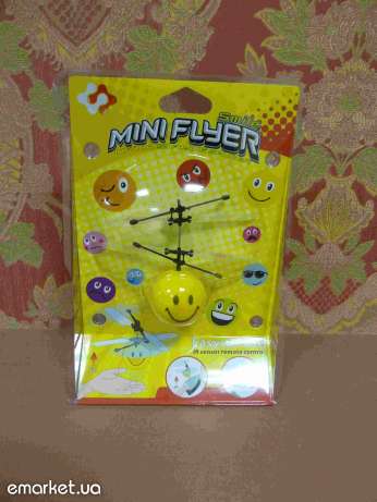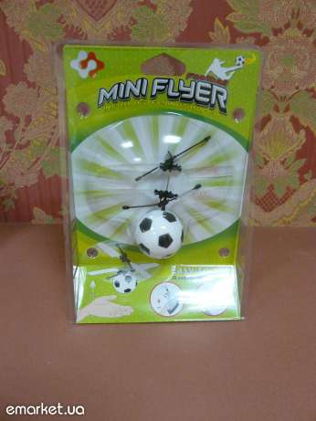 Mini Flyer - игрушка нового поколения. Вертолет - вчерашний день. В мини флаере установлен светодиод, который реагирует на любую поверхность, после чего отлетает, будь то рука, нога, голова или пол, и сразу взлетает вверх. Тут пульт не надо можно играть вдвоем или в компании, по очереди подкидывая мячик вверх. Играть можно весь день так как зарядное у вас собой, то есть ракетка, которая идет в комплекте, в которую ставят 4 пальчиковые батарейки, на ней есть шнур со штекером который подсоединять нужно к мячику. 10 минут игры 15 минут зарядки и так целый день. Очень веселая и надежная игрушка, так как падения ему не страшны, корпус сделан из прочного полипропилена, механизм отключает пропеллеры, если куда-то залетит под шкаф или в кусты. Если флаер уносит ветром, то у вас на ракетке есть кнопка выключения. Мини флаером можно играть как дома, так и на улице. Много места не занимает, можно брать с собой на отдых или на дачу. Очень веселая и радостная игрушка, которая скрасит досуг в любое время. Цена 169 грн. доставка по Украине, оплата при получении