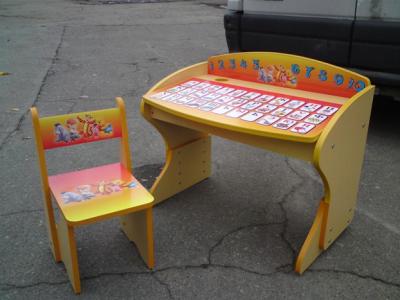 Парта-трансформер "Винни-Пух" Для детей от 3 до 6 лет. Изготовлены из ДСП. Высота столика минимальная 55 см, максимальная 65 см. На столешнице русский алфавит. Размеры столешницы: 70 х 45 см. Производство Украина фото по ссылке http://bosanogka.org.ua/component/page,shop.browse/category_id,25/option,com_virtuemart/Itemid,2/ |
