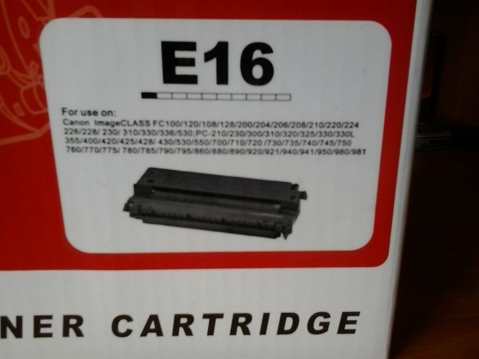 Картридж E-16 используется для лазерной печати. Заправлять картриджи рекомендуется не больше двух-трёх раз, затем необходимо приобретать новый картридж, потому что качество печати не совсем будет удовлетворять вашим требованиям. Это является конструктивной особенностью этого картриджа.
