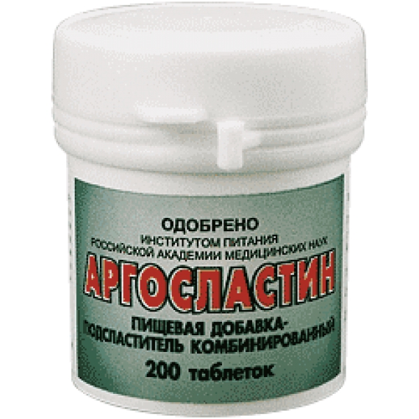 Аргосластин преставляет собой шипучие таблетки, содержащие смесь ацесульфама калия и аспартама.100 таблеток по сладости эквивалентно 1кг сахара,т.е.1 таблетка Аргосластина заменяет 1-2 чайных ложки сахара.