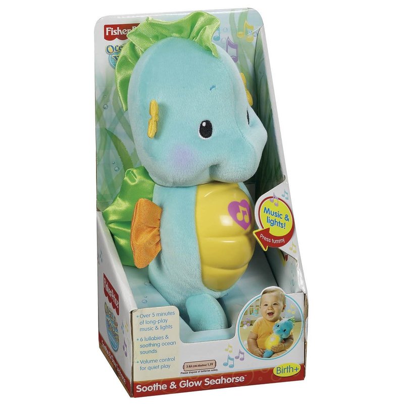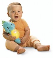 - Когда малыш обнимает своего морского конька, животик игрушки начинает светится и звучит музыка или звуки океана