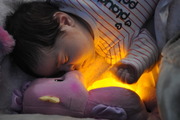 - При легком нажатии на мыгкий животик, он начнет светится мягким светом и играть приятная музыка.