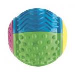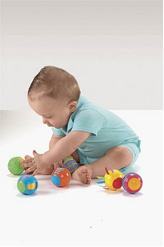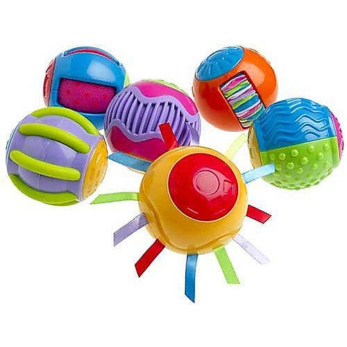 Каждый из чудесных шариков имеет неповторимую по фактуре поверхность и различные включения – всё это стимулирует тактильные ощущения малыша. Ещё на каждом шарике – по 2 разноцветные вставки, отличающиеся по цвету и по фактуре пластика.