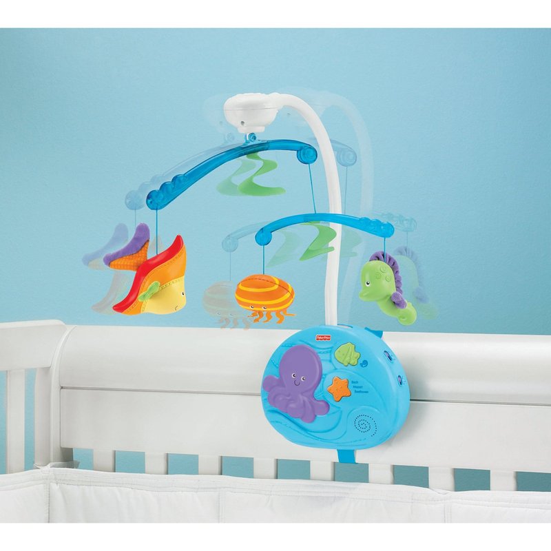 Оригинальный мобиль на детскую кроватку из серии ЧУДЕСА ОКЕАНА, отличающийся от других раскачивающейся дугой с подвесными игрушечками - морскими обитателями. Милые морские друзья улыбаются малышу, мягко покачиваясь из стороны в сторону под прекрасную классическую мелодию или звуки океана…