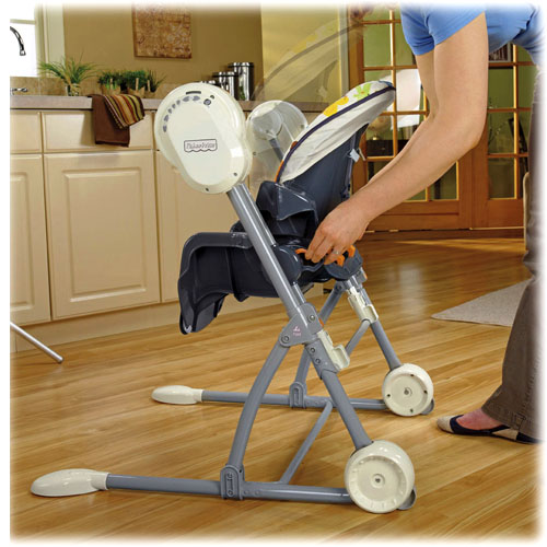 Колесики позволяю быстро переставить стульчик-качель с места на место. Быстро складывается. Удобен в использовании и очень функционален. Как качель может быть использован до 12 кг. Как стульчик для кормления - до 22 кг!!!
