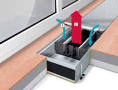 В внутрипольных конвекторах Mohlenhoff WSK используется принцип естественной конвекции для экранирования холодного воздуха проникающего из окон. Это предупреждает запотевание и образование конденсата на них. |