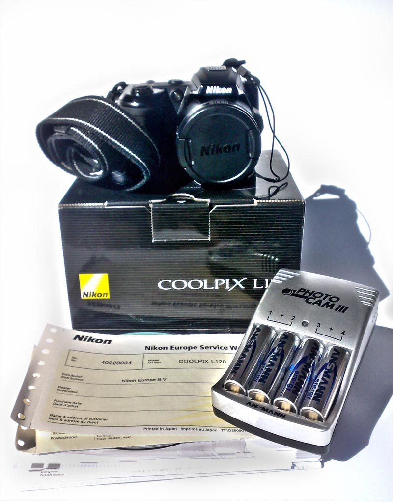 Продам фотоаппарат Nikon Coolpix L120, к нему прилагается: вся документация, в том числе гарантия и чек о покупке, крышка объектива, ремешок, диск с драйверами и ПО, USB-кабель и кабель для подключения к телевизору. А в подарок отдаю зарядное устройство и аккумуляторы Ansmann Photo Cam III 4х2850 mAh типа АА, а также защитную пленочку для экрана.