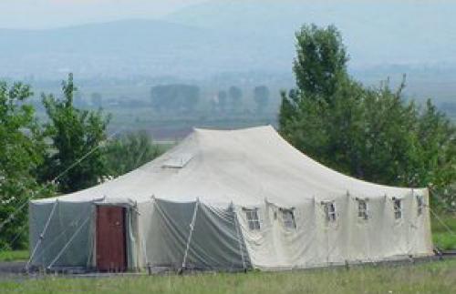 Описание: Палатка УСБ-56 (унифицированная санитарно-барачная) ТУ 17 РСФСР 0303520-42-91 предназначена для санитарных нужд, временного проживания личного состава в полевых условиях, а также для работы и хозяйственных нужд. Вместимость палатки УСБ-56 -на кроватях 20 человек, на носилках 30, на полу 40, на двухъярусных нарах 80 человек. Особенности конструкции Палатка УСБ-56 изготовлена из парусины льняной и полульняной со светопрочной комбинированной повышенной водоупорности пропиткой СКПВ. Внутренний намет из отбеленной бязи. Стенки отепления из фланели или байки. Общая масса 430 +/-23 кг. Общая площадь пола 58,56 кв.м. Вместимость палатки: 1. При размещении людей на отдельных кроватях: 20 человек; 2. При размещении раненых на носилках: 30 человек; 3. При размещении на двухъярусных кроватях, полу или общих нарах: 40 человек; 4. При размещении на двухъярусных нарах: 80 человек; 5. При использовании палатки под пункт санитарной обработки: 16 душевых мест. Комплектация: 1. Наружный намет -1 шт., 2. Внутренний намет -1 шт., 3. Стенки утепления -2 шт., -деревянные стойки боковые -22 шт., -деревянные стойки средние -2 шт., -деревянные стойки тамбурные -4 шт., -деревянный гребень -1 шт., -колья металлические (уголок стальной равнополочный 40х40х5) -30 шт., -лист к вентиляционному отверстию дымохода (сталь листовая ? 0,5 мм) -2 шт., -рама оконная остекленная с подрамником -12 шт., -веревочные оттяжки -30 шт., -вазик -2 шт., -кувалда кузнечная с ручкой -1 шт. Основные размеры палатки: -длина 9,60 м. -ширина 6,10 м. -высота боковой стенки 1,75 м. -высота по гребню 3,55 м. -площадь пола 57,00 м.кв. Вес и упаковка: 1. Наружный намет -120 кг. 2. Внутренний намет. -30 кг. Упаковывается в брезентовые конверты 3. Навесные стенки утепления -70 кг. и перевязывается веревкой: 2 места, 4. Гребень и средние стойки -20 кг. В разборном виде складываются в пачки 5. Стойки боковые -26 кг. и связываются в двух метах веревкой 6. Стойки тамбура -6 кг. 3 места, 7. Колья металлические -45 кг. Укладываются в деревянные ящики: 3 места, 8. Оттяжки и вазики -10 кг. Укладываются в мешок для такелажа: 1 место, 9. Рамы оконные -30 кг. 10. Подрамники -20 кг. Укладываются в деревянные кассеты 11. Лист дымохода -1 кг. 2 места. 12. Упаковочная тара -70 кг. Общий вес палатки с упаковкой: 450 ± 5 кг Внимание Палатка без стоек!