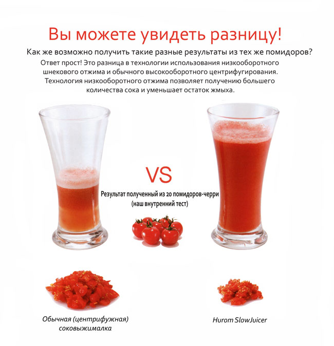 Больший выход сока: проведенные тестирования доказывают, что с помощью Hurom Slow Juicer, можно получить до 50% больше сока.