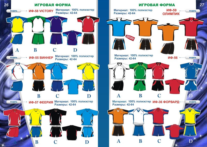 Предлагаем спортивные формы для различных видов спорта как массового производства, так и индивидуальный пошив по каталогам и персональным размерам |
