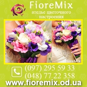 Ателье цветочного настроения «FioreMix» предлагает: Прекрасное настроение в день Вашей свадьбы. Весь спектр свадебной флористики: Живые, искусственные цветы, декор для свадьбы. Все для свадьбы - оформление цветами банкетного зала. Все для свадьбы - оформление выездной росписи. Все для свадьбы - оформление цветами кортежа. Букет невесты, букет-дублер в Одессе. Бутоньерки, браслеты свидетелей. Подарочные букеты. Свадебная арка. +38(097)2955933 +38(048)7722358 www.fioremix.od.ua |