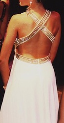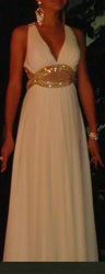 Размер: S,XS Размер40-42, одевалось 1 раз на конкурс красоты.Платье шифоновое, украшенное стразами. Цвет белый. Шикарный переплет на спине. Покупалось в Турции. |