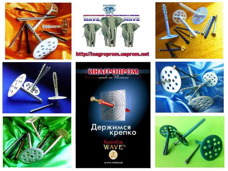 Дюбеля для пенопласта, пенополистирола, стекловаты, утеплителей, минеральной ваты, изоляции, термоизоляции, звукоизоляции и теплоизоляции серии ЭКОНОМ 58 видов диски 70,60 и 50 mm, L70-220 mm, 3 вида гвоздей. iso 9001 , укрсепро, белстандарт, росстандарт Вся продукция сертифицирована: iso 9001 , укрсепро, белстандарт, росстандарт Зарегистрированная торговая марка ( с 1996 года): WAVE Весь ассортимент продукции завода защищён патентами. |