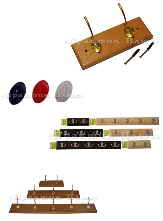 Бытовые вешалки изготавливается из ольхи, окрашены в темные и светлые тона.Предлагаемые размеры: 8 см х 22 см на 2 крючка, 8 см х 42 см на 3 крючка , 8 см х 62 см на 5 крючков. Крючки пластиковые самоклеющие Цвета синий, белый, красный. Размер: 20*30мм Размеры и более детальную информацию а также полный ассортимент нашей продукции Вы можете посмотреть на нашем сайте : http://praktikplus.com.ua |