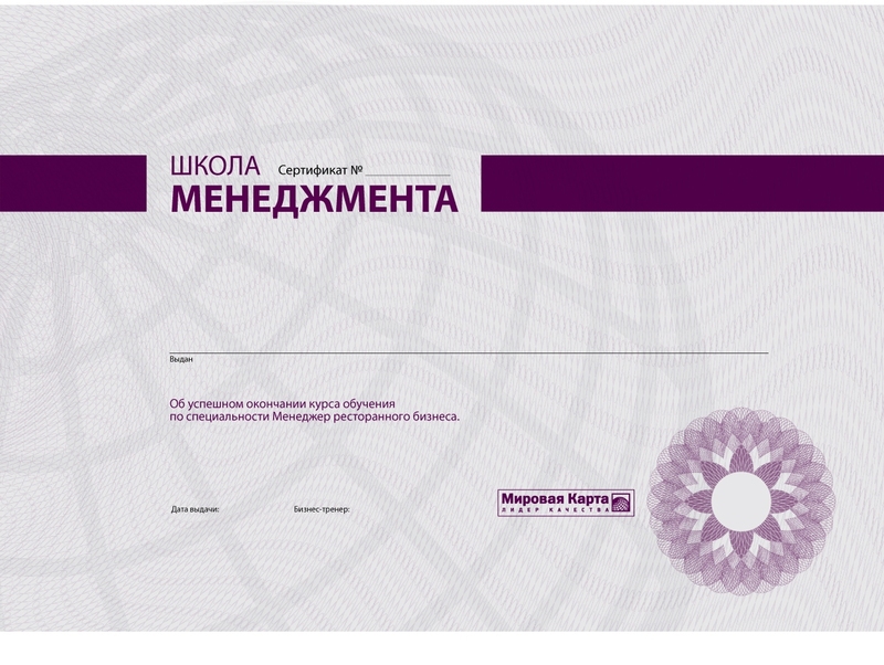 Открыт набор на обучение в Школе Менеджмента Группы компаний "Мировая Карта" по специальности "Менеджер ресторанного бизнеса" Под руководством опытных преподавателей Вы освоите основы ресторанного бизнеса - перспективной отрасли развития экономики. Группа Компаний Мировая Карта основана в 1996 году и имеет огромный опыт ведения ресторанного бизнеса. Тематика и учебные курсы: