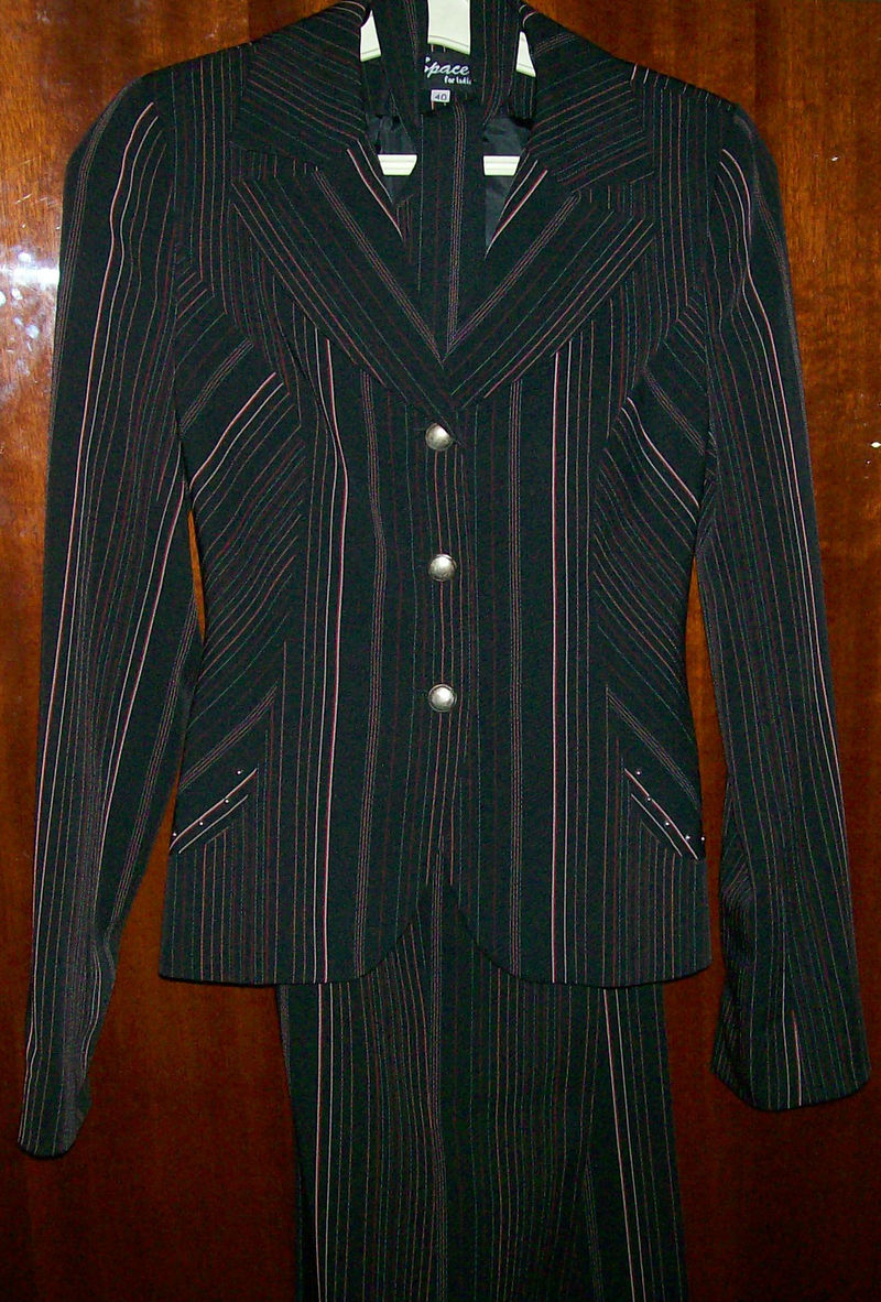 длина пиджака - 58 см, длина рукава ( с манжетой)- 85 см длина брюк - 113 см, обхват талии - 65 см, обхват бёдер - 88-92 см
