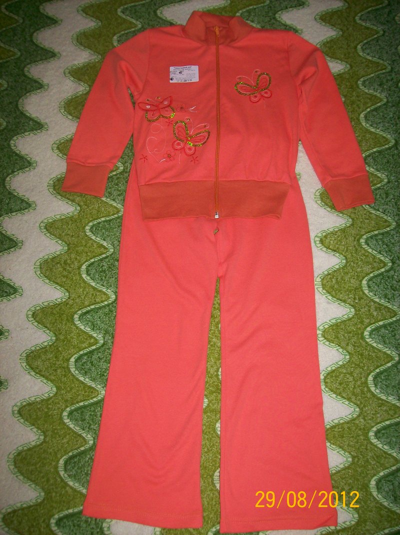 ФОТО 1 - Спортивный костюм кораллового цвета, для девочки - 90 грн. размер 34, на рост 116 - 122 см, однотонный интерлок Длина курточки - 44 см, длина рукава - 42,5 см, ПОТ - 32 см Длина штанишек - 75 см, ПОТ - 25 см, ПОБ - 32 см ФОТО 2 - Домашний костюм тёплый (комплект) - 55 грн длина кофты - 48 см, длина рукава - 42 см, ПОТ - 33 см длина штанишек - 76 см, талия - 20 см (на резинке в нерастянутом виде), ПОБ - 33 см на штанишках внизу резинка. |