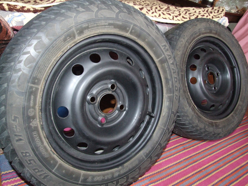 14" 4х100 ЕТ49 J5.5 dia 56.5 Диски в очень хороем состоянии Эксплуатировались в Польше. Резина: Matador SiliКa MP58 185/65/14 (Словакия). Направленная. Зима. Резина почти слики. За пару колес: 400 грн Киев. Отправка по Украине (063)784-54-77 |