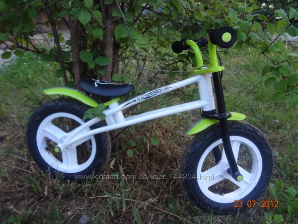 Материал рамы: Алюминий(очень большой плюс в плане длительного пользования,при сколах и царапинах лакокрасочного покрытия рамы-отсутствие коррозии! как это происходит на велосипедах с металлической рамой!) поэтому даже через года этот беговел будет иметь всё такой же привлекательный вид и надёжное рабочее состояние!