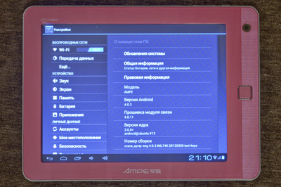 WIFI, Камера, Акселерометр (G-Sensor), микрофон, спикер.