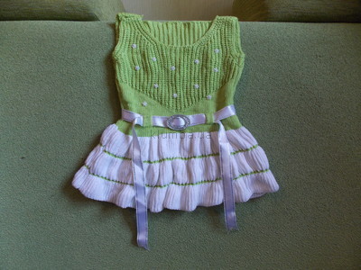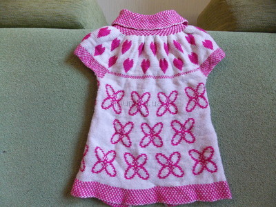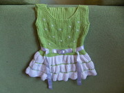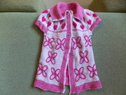 Для девочки 1).Платьице очень красивое.У нас оно было по началу платьем ,а потом носили как тунику.Возраст от 6 мес. и до 1- 1,5 года. 2).Туника на возраст от 9 мес. и до 1,5 года. 1 и 2 вещь - машинная вязка. Стоимость одного изделия 50 грн. |