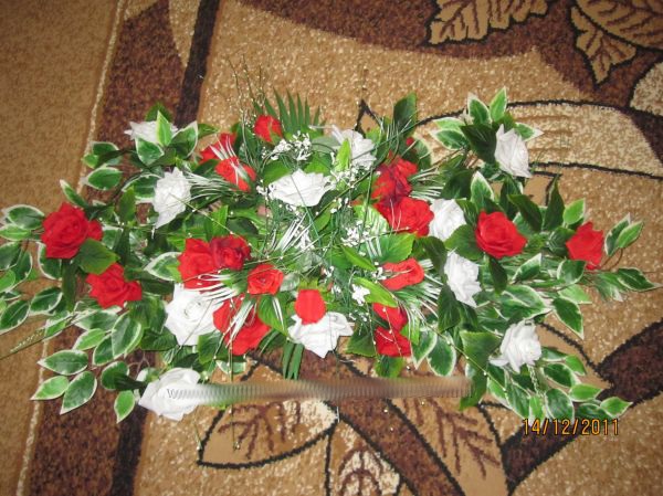 Шикарное украшение на авто (на решетку радиатора или капот, крышу). Красивая большая (1 м * 50 см - больше, чем обыкновенные типовые украшения) экибана из исскуственных цветов (красные и белые розы) и 8 бутоньерок на ручки авто. Можно комбинировать, бутоньерки - ручная работа. Можно все на 1 машину (капот или крыша, решетка радиатора, дверцы, зеркала) либо разделить на 5 авто (первая - урашение, остальные - бутоньерки на зеркала) Прокат - 100 грн. Продажа 250 грн. Будут вопросы - спрашивайте, с удовольствием отвечу. Ваше авто не останется незамеченым в ваш самый яркий день. |