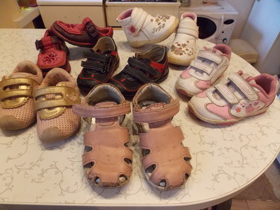 Размер: 19,20,21,22 Продаётся обувь. 1). Босоножки 21 р. спереди не много с чёсаные.- 20 грн. 2). Clarks. 21 р.- 60 грн. 3). Ботиночки кожаные 20 р.- 50 грн. 4). Кроссовки Ortope 19 р.- 60 грн. 5) Кроссовки Clarks с боку светятся,очень даже интересные и аккуратненькие по ножке. 22 р.- 50 грн. |