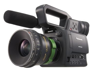 Профессиональная видеокамера серии AVCCAM, снабженная оптической системой микро 4:3, используемой в цифровых однолинзовых зеркальных камерах (DSLR).