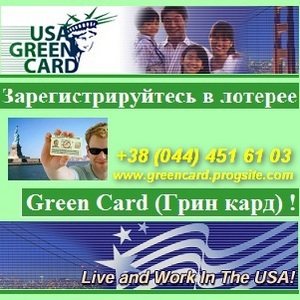 ТУР Агентство «АВИС» предлагает: Ежегодная американская лотерея - dvlottery 2014! Green Card или Зеленая Карта - это самый простой способ уехать в США. Выигрыш в Green Card дает право на иммиграцию и ПМЖ в Америке. Прием заявок ТОЛЬКО с 02.10.12 по 03.11.12. Что такое Green Card, правила участия, как подать заявку - подробнее на сайте. +38(044)4516103 +38(044)5319706 +38(068)4199951 Киев, ул. Горького, 170/1 Б www.greencard.progsite.com |