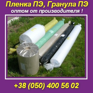 Производство: Пленка рукавная, полу рукав, полотно. Черной полиэтиленовой пленки (вторичного ПЭ). Пленка строительная черная от 12,5 грн/кг ПЭ пленка черная для с/х от 12,5 грн/кг Пленка для мульчирования почвы от 13 грн/кг ПЭ пленка цветная от 12,5 грн/кг (для упаковки и плащей дождевиков). Пленка термоусадочная от 13 грн/кг Пленки ПЭ 30-250 мкм оптом. Рулоны 50, 100, 150, 200 мкм. Гранула полиэтилена от 10 грн/кг Доставка по Украине. Игорь +38(050)4005602 +38(067)5733636 |
