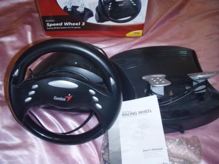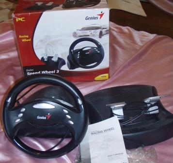 Компьютерная игровая приставка «Автомобильный руль» (с педалями, крепится к столу, пластмассовая, чёрного цвета) - 150 грн; |