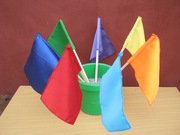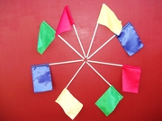 Производство и продажа флажков с деревянной ручкой. Например: Прямоугольное полотнище размером 13см х 18см (материал: крепсатин и атлас), прикрепленное к древку круглого сечения длиной 30см и толщиной 8мм или 10мм, гладко обработано для безопасного применения (толщина древка под заказ: 4мм;5мм;6мм;7мм;8мм;10мм). Без сучков и заноз. С флажками можно проводить веселые игры-разминки для детей от двух лет. Развитие внимания и реакции детей, знание цвета и т.д. Цена на флажок с древком 10мм х 300мм, полотнище - 130мм х 180мм: опт(100шт) - 6 грн/шт.(от 100шт), розница – 7 грн.