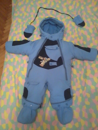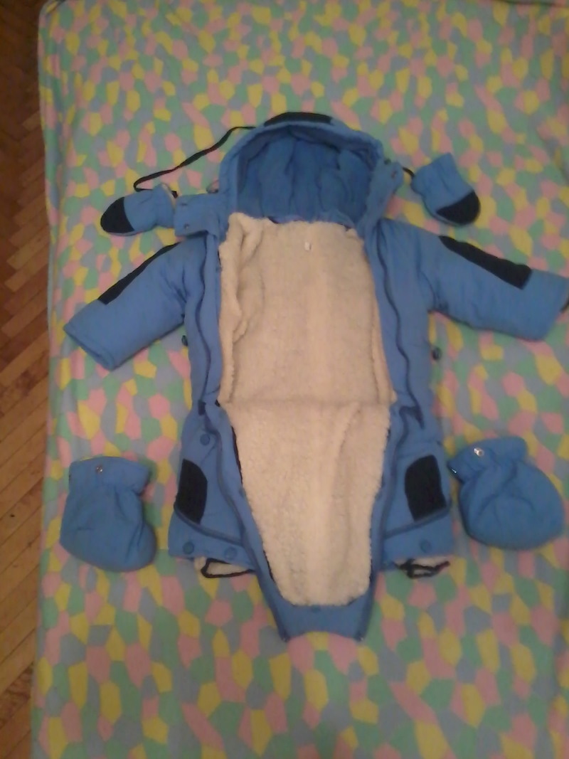 Продам комбинезон - конверт на меху,мех отстегивается, делается конверт или комбинезон.Сапожки отстегиваются,есть варежки.Ребенок в нем только спал.Размер : 74см.Производство Турция.Цена 400грн.Фото не очень,он ярче. |