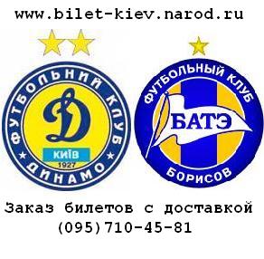 16 сентября 2010г., в Киеве на стадионе Динамо им. В.Лобановского пройдёт матч Лиги Европы 2010/2011 между Динамо (Киев) и "БАТЭ" (Борисов, Беларусь). Билеты на матч Динамо-Батэ, можно заказать на сайте www.bilet-kiev.narod.ru и по т.(095)710-45-81 |