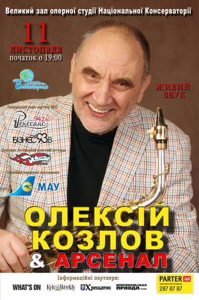 Национальная музыкальная академия Чайковского Оперная студия – Большой зал 11 ноября в 19.00 Легендарный джазовый саксофонист АЛЕКСЕЙ КОЗЛОВ и джаз-рок ансамбль АРСЕНАЛ Билеты уже в продаже http://www.parter.ua/ua/event/42/50/891.html тел.: 287-87-87 |