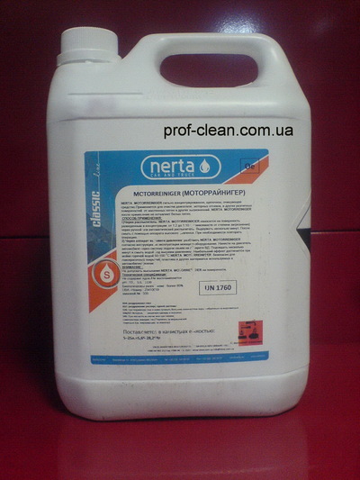 NERTA MOTOR CLEANER продажа автохимии сильноконцентрированное, щелочное, очищающее средство. Применяется для очистки двигателя, моторных отсеков и различных поверхностей от масляных пятен и других загрязнений, после применения не оставляет белых пятен.