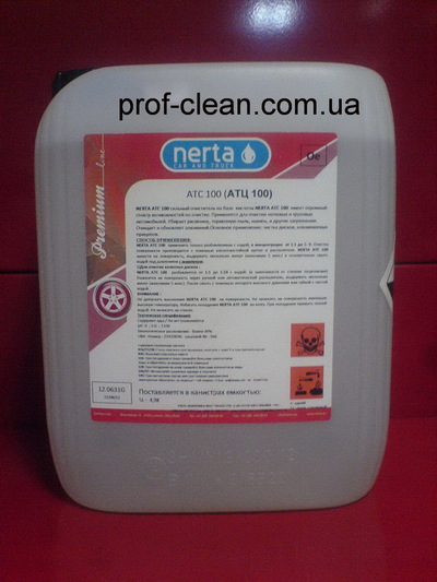 NERTA АТС 100 сильный очиститель на базе плавиковой кислоты. Имеет огромный спектр возможностей по очистке. Применяется для очистки легковых и грузовых автомобилей, убирает ржавчину, тормозную пыль, накипь, и другие загрязнения. Очищает и обновляет алюминий. Основное применение: чистка дисков, алюминиевых прицепов.