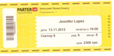 Продам 3 билета на концерт Дженифер Лопес. Дата: 13.11.2012, 19:00. Место проведения: Дворец Спорта, 8й сектор, 6й ряд, места 6,7,8. Стоимость 1 билета 2 000грн. Возможен торг. тел. 097 9451256 |