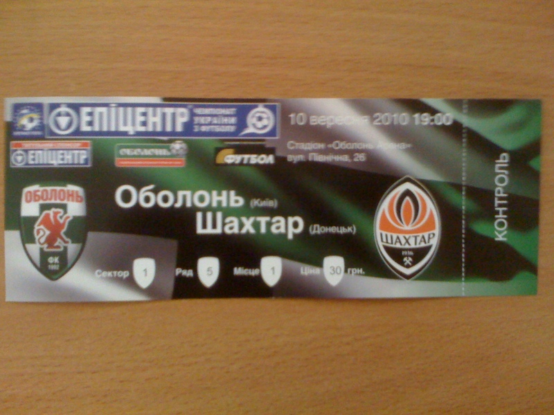 Билеты на футбол Оболонь-Шахтёр 10.09.2010 - Билеты на футбол