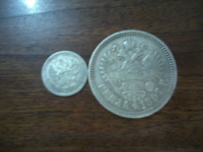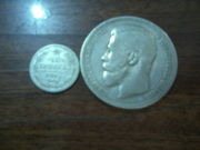 Серебряный рубль в отличном состоянии 1897 года. Серебряные 10 копеек 1861 года. |