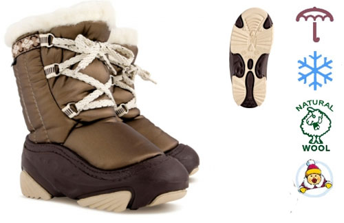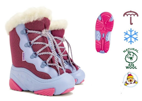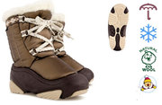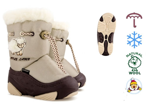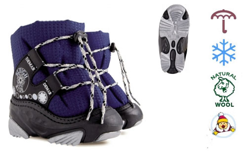 В зимней обуви Demar используется натуральная овечья шерсть, поэтому все сноубутсы выдерживают морозы до -25ºС, и ножка при этом не потеет при высокой температуре. Верх обуви выполнен из непродуваемого водоотталкивающего текстильного материала, обладающего высокими износостойкими свойствами. Подошва изготовлены из термопластичной резины, сохраняющей гибкость и эластичность при низких температурах. Модельки зимних сноубутсов очень лёгкие и их вес составляет менее 400 граммов.
